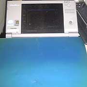 まずは、私もずっと愛用しているToshiba Libretto50である。このマシンは全くのノーマルである。前回のLibretto50は150MHz駆動であり、別のマシンである。動いているアプリケーションはプリンタポートをたたくソフト。