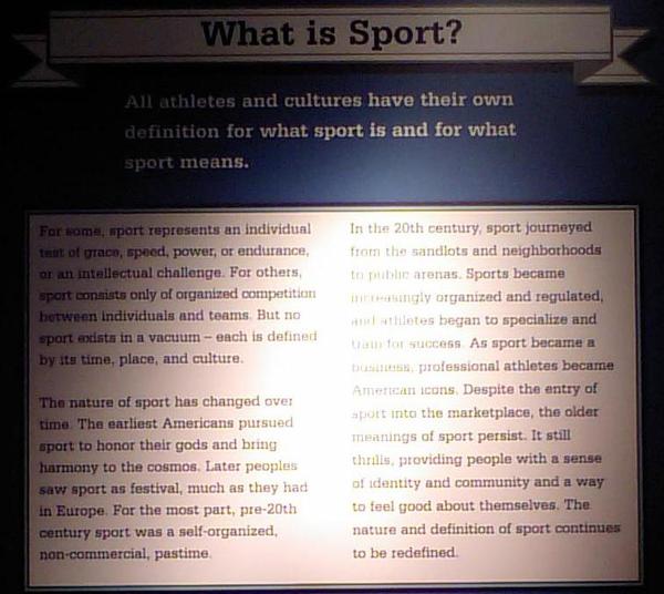 本田技研工業が今シーズンを最後にF1世界選手権から撤退するというニュース、あるいは、F1がさらに使用リソース・技術を削減していくという記事を見て(F1 ルール変遷)、ふと、車両技術開発者やドライバーやメンテナーや、そんな多数の人からなるチームが競い合うF1というスポーツは、どういうスポーツなのだろう、と思った。そして、自動車レースの写真とともにスポーツ博物館の入り口に掲げられていた文章を思い出した。