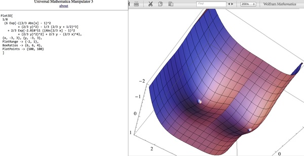 タイムリーなことに「おっぱい(曲面)方程式を作り出した」という世紀の大発見がありました。そこで、まずはハロー・オッパイということで、Mathematica版「おっぱい(曲面)方程式」を書き、「Wolfram CDF PlayerをMathematicaとして使う方法」をRubyでもっと簡単にしてみたのやり方を使い、Universal Mathematica Manipulator 3でおっぱい(曲面)方程式を描いてみました。描いた結果が右上画像です。